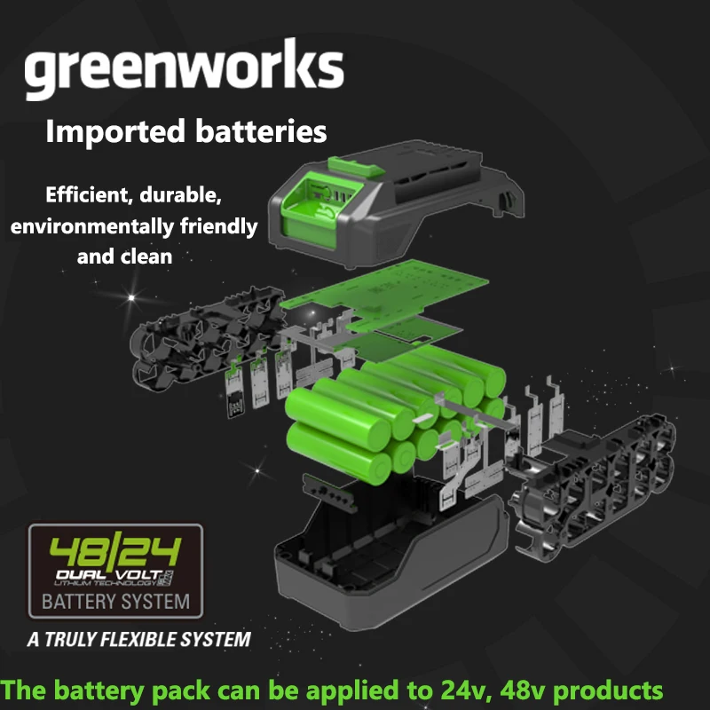 Greenworks-motosierra inalámbrica, 24v/48v, barra de guía de 12 pulgadas