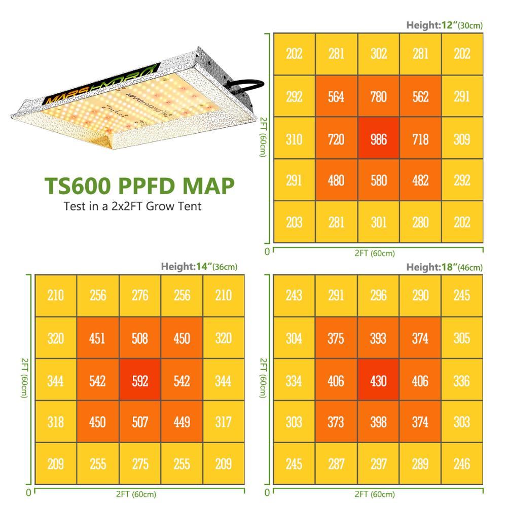 TS puede proporcionar a sus plantas un alto valor de PPFD, hasta 2,2 μmol/w.